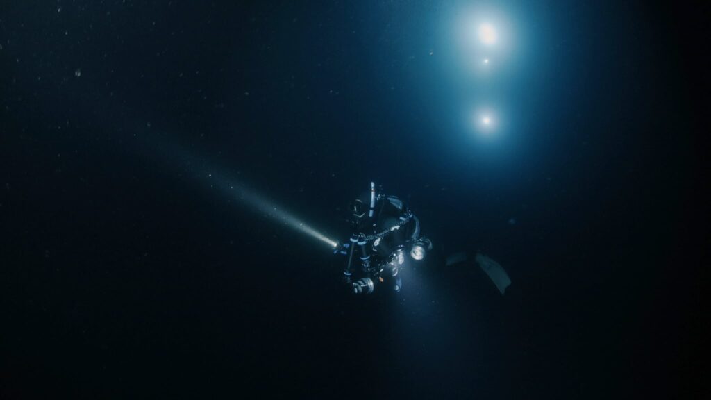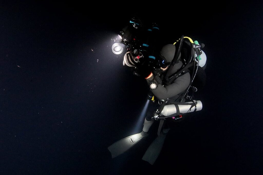 捕食圧を避け、より自然な生態を観察するため、峯水氏は現在、水深数百〜数千メートルの外洋域でのドリフトダイビングを主軸としている。